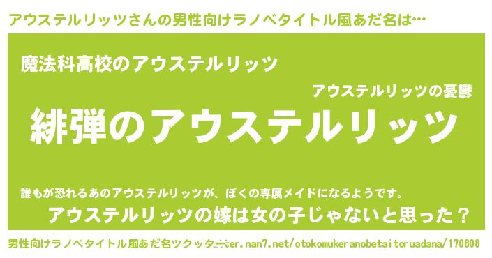 | 女子向けラノベタイトル風あだ名 | 『シンデレラアウステルリッツ家の靴箱館』 |