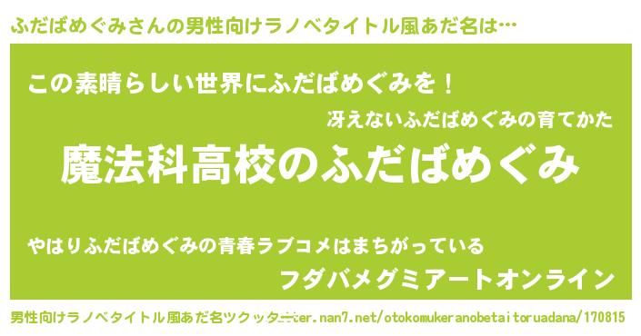 | 女子向けラノベタイトル風あだ名 | 『ふだばめぐみなんてお断りですっ。』 |