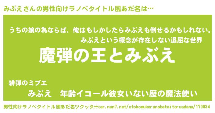 | ファンタジー風あだ名 | 『ヴァルミブーナ』『エターナルミブエー』 |