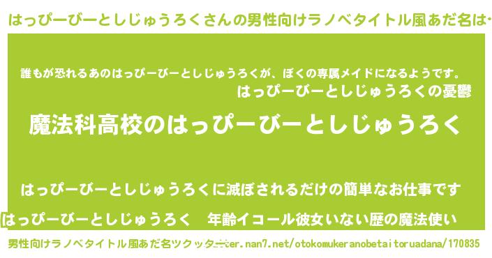 | ヘコむあだ名 | 『はっぴーびーとしじゅうろく(震え声)』 |