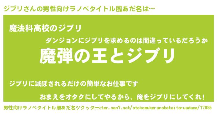 | 女子向けラノベタイトル風あだ名 | 『乙女ゲームの破滅フラグしかない悪役ジブリに転生してしまった…』 |