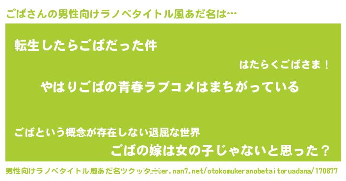 | 胡散臭い通販商品みたいなあだ名 | 『幸せが訪れる高級そうな壺…その名も「ごば」』 |