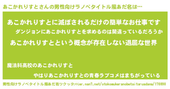 | 胡散臭い通販商品みたいなあだ名 | 『来世でも幸せになれる水素水…その名も「あこかれりすと」』 |