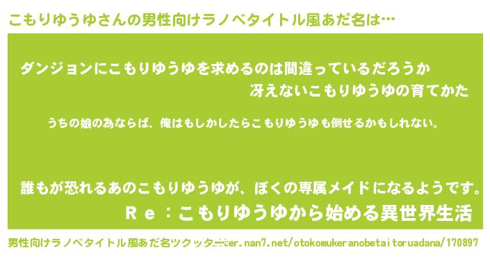 | 女子向けラノベタイトル風あだ名 | 『こもりゆうゆの婚約者』 |