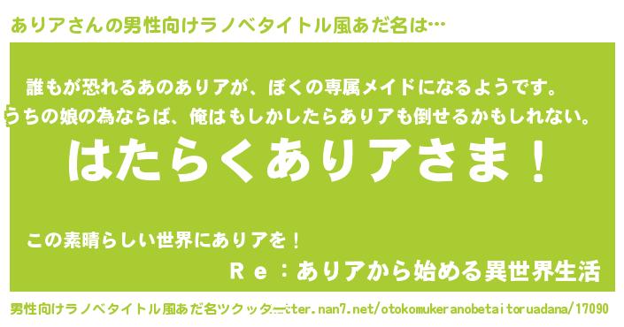| 意味不明あだ名 | 『永久保存ありア』『自称ありア』 |