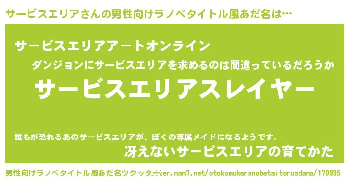 | 胡散臭い通販商品みたいなあだ名 | 『必ず成功する水晶球…その名も「サービスエリア」』 |