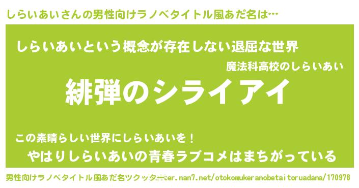 | 意味不明あだ名 | 『永久保存しらいあい』『自称しらいあい』 |