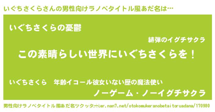 | 胡散臭い通販商品みたいなあだ名 | 『あなたにだけ特別に提供する100年もののヴィンテージワイン…その名も「いぐちさくら」』 |