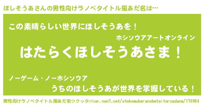 | 意味不明あだ名 | 『住所不定無職ほしそうあ(13歳)』 |