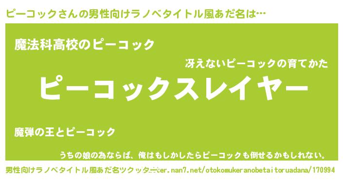 | ヒーロー風カッコイイあだ名 | 『ウルトラ戦士ピーコック』 |