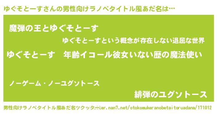 | 女子向けラノベタイトル風あだ名 | 『ゆぐそとーすの玉の輿計画!』 |