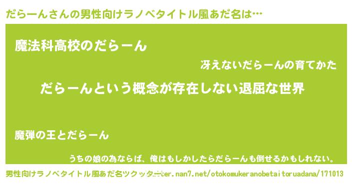 | 意味不明あだ名 | 『永久保存だらーん』『自称だらーん』 |