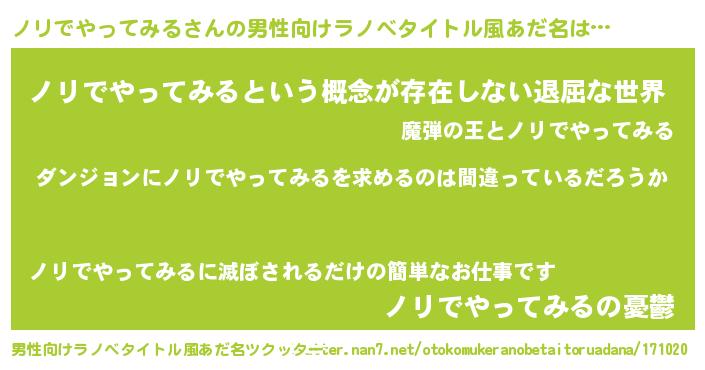| 女子向けラノベタイトル風あだ名 | 『ノリでやってみるは平凡を望む』 |