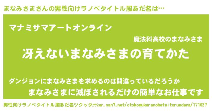 ヘコむあだ名 | 『まなにゅー』『まなお』『豆乳』 |