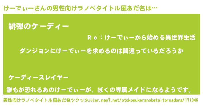 けーでぃーさんの男性向けラノベタイトル風あだ名をツクッター!