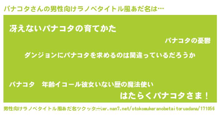 | 女子向けラノベタイトル風あだ名 | 『パナコタの卵を拾いまして』 |
