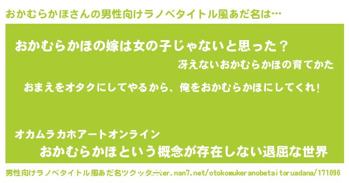 | ヘコむあだ名 | 『おかっぺ』『おかむらかほ(苦笑)』 |