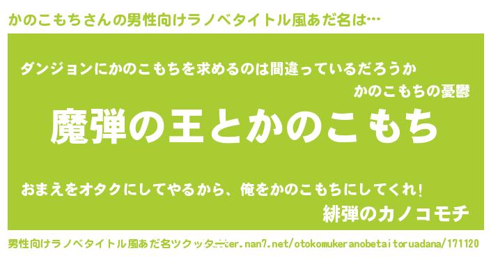 | 意味不明あだ名 | 『住所不定無職かのこもち(98歳)』 |