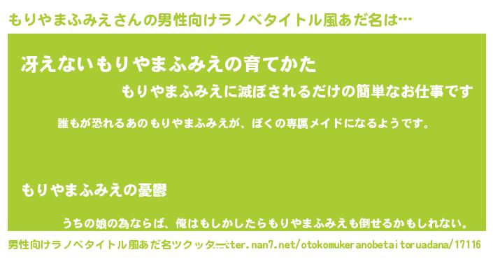 | 肩書あだ名 | 『もりやまふみえ先生』 |