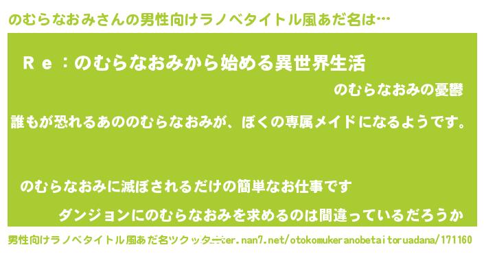 のむらなおみさんの男性向けラノベタイトル風あだ名をツクッター!