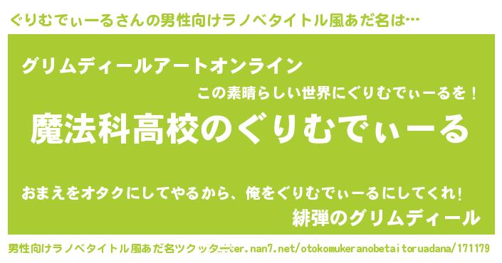 | 女子向けラノベタイトル風あだ名 | 『ぐりむでぃーるなんてお断りですっ。』 |