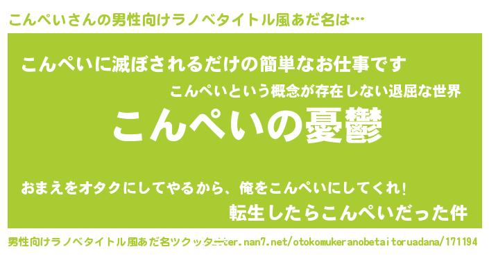 | 女子向けラノベタイトル風あだ名 | 『こんぺい姫と円卓の騎士』 |