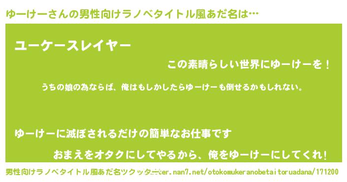 | 意味不明あだ名 | 『ゆーけーフォーエバー』『自称ゆーけー』 |
