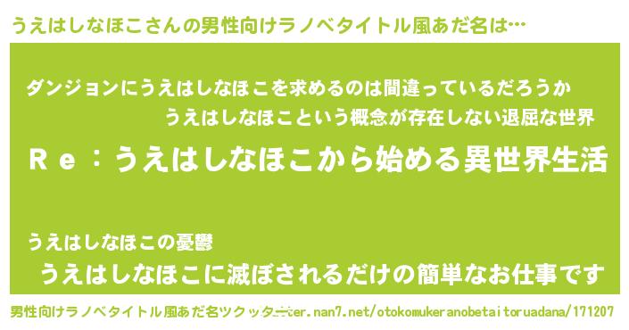 | 女子向けラノベタイトル風あだ名 | 『闇のうえはしなほこ』 |