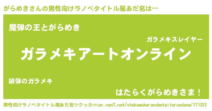 | 胡散臭い通販商品みたいなあだ名 | 『億万長者になれる水晶球…その名も「がらめき」』 |
