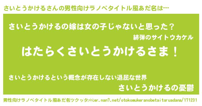 | 意味不明あだ名 | 『とにかく怪しいさいとうかける』 |
