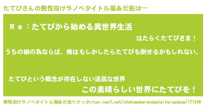 | 胡散臭い通販商品みたいなあだ名 | 『運命の人と巡り会える高級そうな壺…その名も「たてぴ」』 |