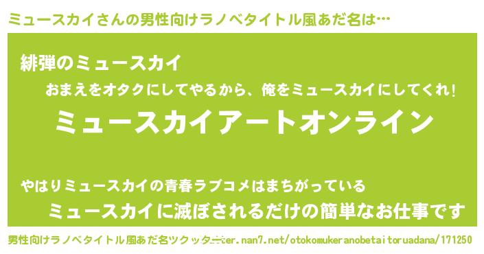 | 胡散臭い通販商品みたいなあだ名 | 『モテモテ間違いなしブレスレット…その名も「ミュースカイ」』 |