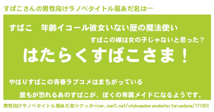 | ヘコむあだ名 | 『すばこ(遠い目)』『すばを』 |