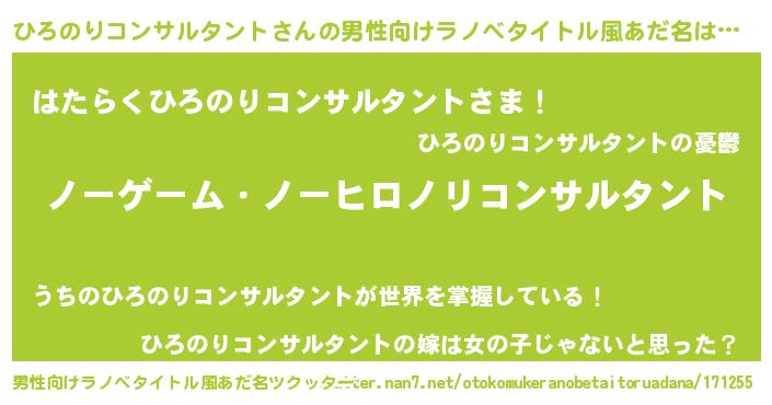 ひろのりコンサルタントさんの男性向けラノベタイトル風あだ名をツクッター!