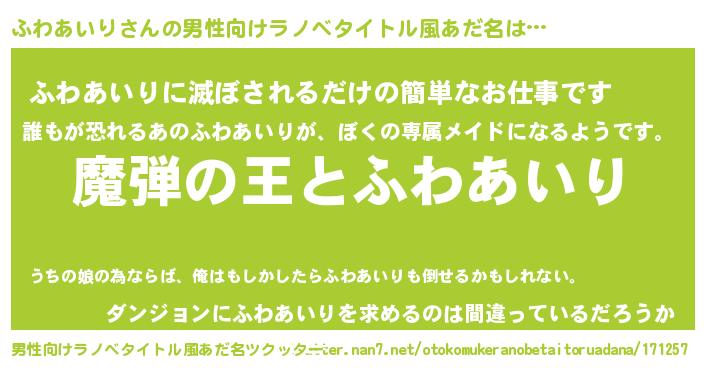 | 意味不明あだ名 | 『住所不定無職ふわあいり(59歳)』 |