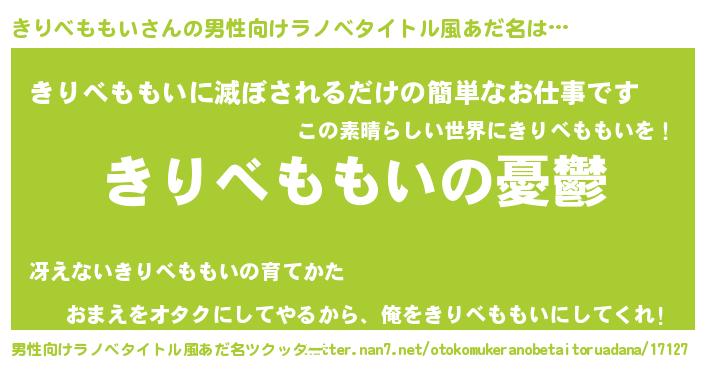 | 女子向けラノベタイトル風あだ名 | 『きりべももい姫と円卓の騎士』 |