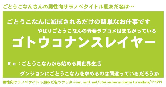 | 料理風あだ名 | 『ごとうこなんごはん』 |