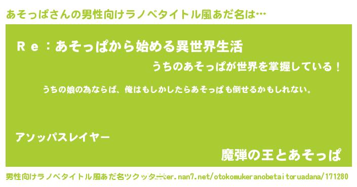 | 胡散臭い通販商品みたいなあだ名 | 『運命の人と巡り会える高級そうな絵画…その名も「あそっぱ」』 |