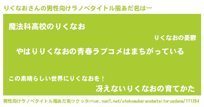 | 意味不明あだ名 | 『りくなおフォーエバー』『自称りくなお』 |