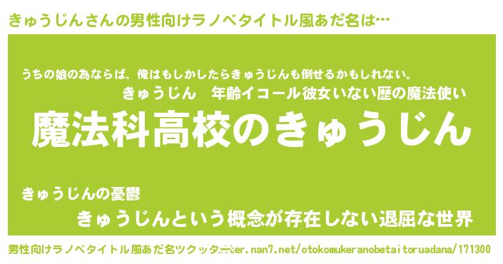 | ヒーロー風カッコイイあだ名 | 『サイバー戦士キュウジン』 |