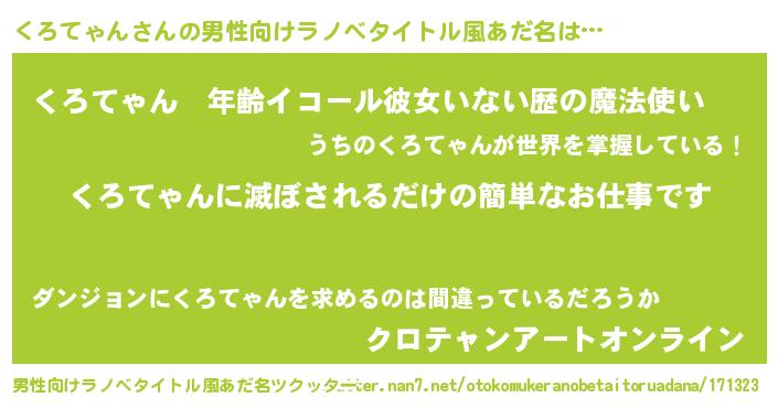 | 胡散臭い通販商品みたいなあだ名 | 『モテモテ間違いなし水晶球…その名も「くろてゃん」』 |