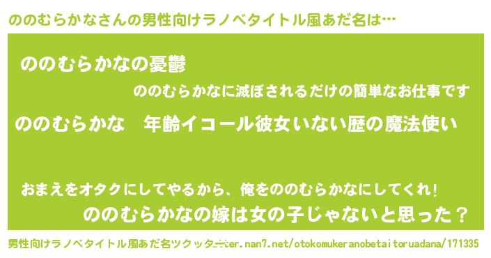 | ヒーロー風カッコイイあだ名 | 『スーパーノノムラカナ』『暗黒騎士ノノ』 |