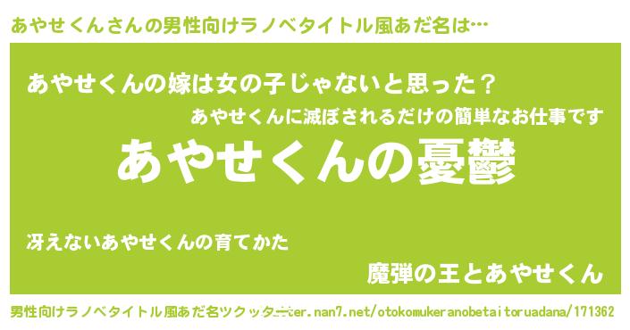 | 女子向けラノベタイトル風あだ名 | 『(仮)あやせくんのやんごとなき事情』 |