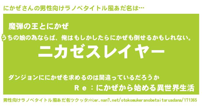 | ヒーロー風カッコイイあだ名 | 『仮面ニカダー』『ウルトラ戦士ニカゼ』 |
