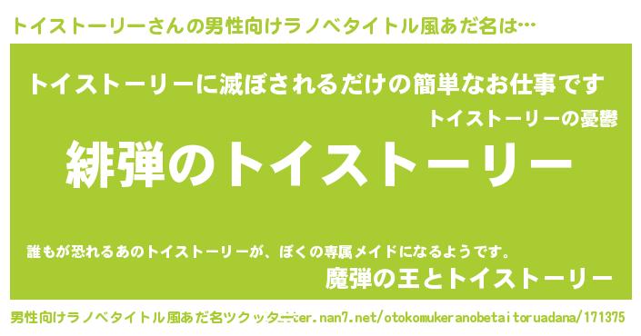 | 意味不明あだ名 | 『住所不定無職トイストーリー(85歳)』 |