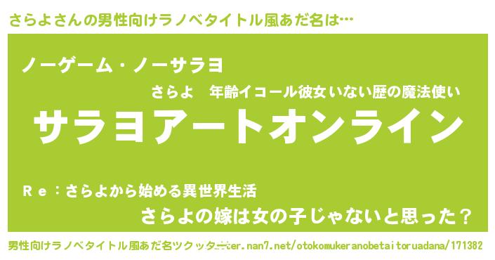 | 胡散臭い通販商品みたいなあだ名 | 『億万長者になれるブレスレット…その名も「さらよ」』 |
