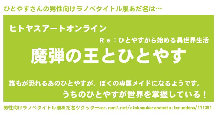| ヘコむあだ名 | 『ひとにゅー』『ひとやす(小並感)』 |