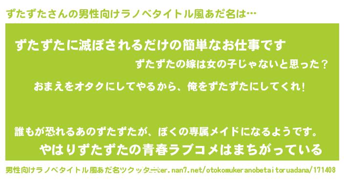| ヒーロー風カッコイイあだ名 | 『正義の使者ずたずた』『魔戒騎士ズタ』 |