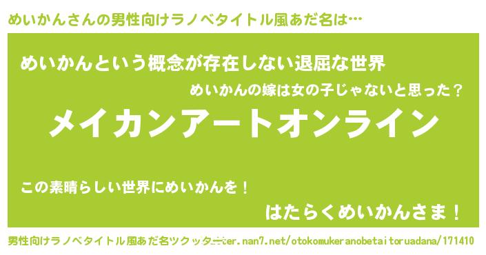 | 欧米人風あだ名 | 『マイケルめいかん』『ウサインめいかん』 |