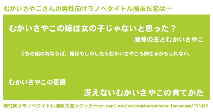 | 女子向けラノベタイトル風あだ名 | 『むかいさやこの婚約者』 |